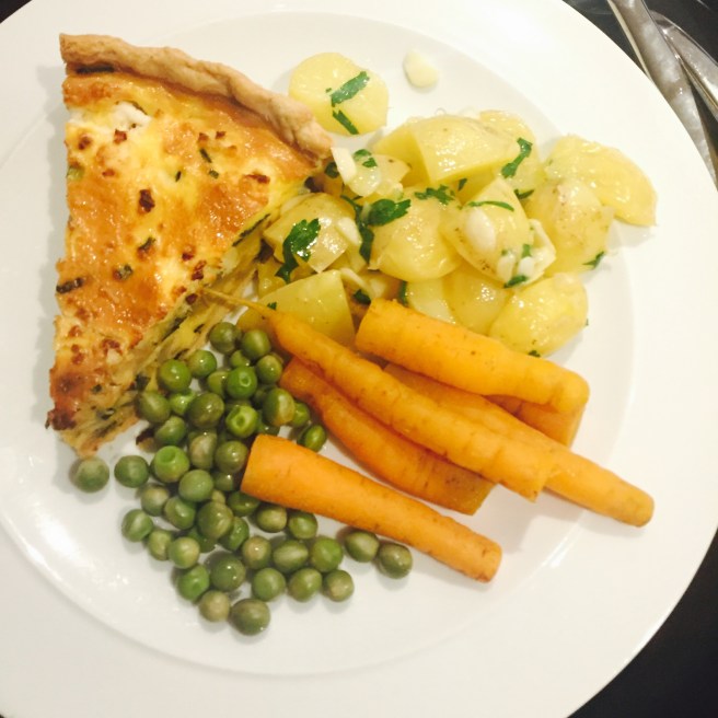I posted the recipe and method for my courgette and goats cheese quiche last year. This is a slightly updated version with a few tweaks on a day where I tried to make a meal that was more or less entirely homegrown.