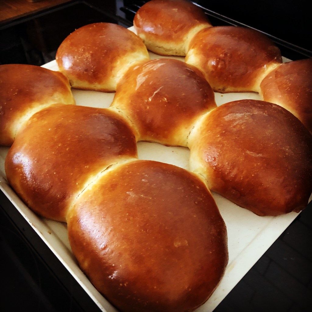 Using a bread maker to make your dough and do the first prove, these are spectacularly easy to make! This is my basic bap recipe, enriched with butter, eggs and just a touch more sugar.