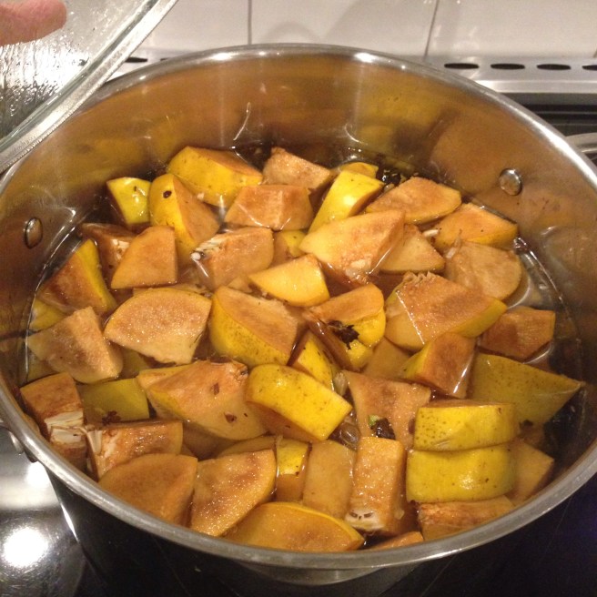 Place in a large pan on the stove and cover with just enough water to submerge the fruit. Boil then simmer until very soft and tender (about 40-50 minutes) – your home will smell amazing as the floral aroma fills your kitchen!