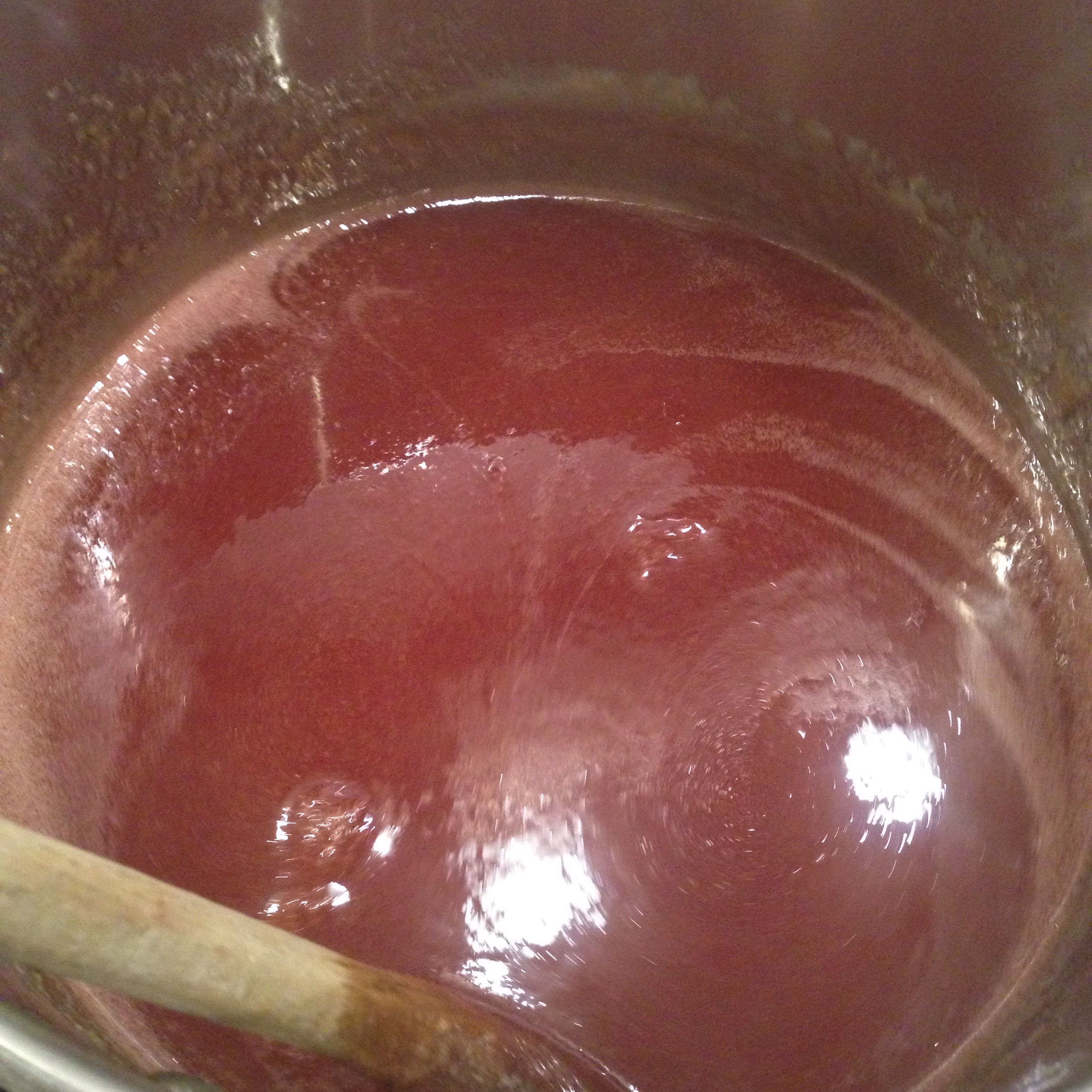 Remove from heat and allow to cool slightly before mashing the fruit in the water with a potato masher.