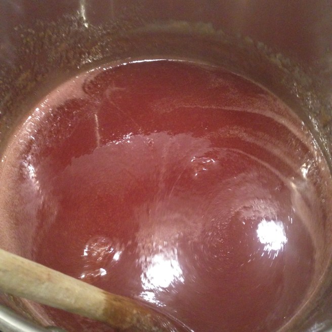 Simmer (bubbling lightly) for approximately 40 minutes until reduced and rich red in colour. Ladle through a jam funnel into warm, sterilised jars.