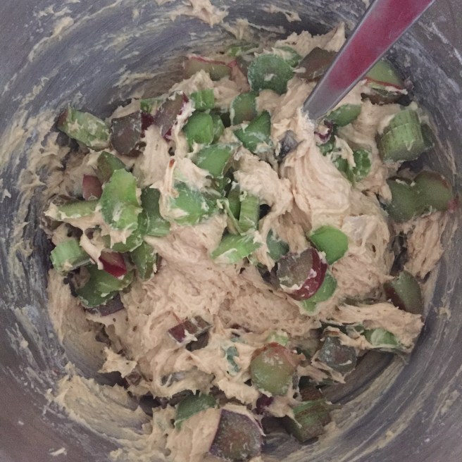 Wash and dry the rhubarb then chop finely and add into the main mixture.