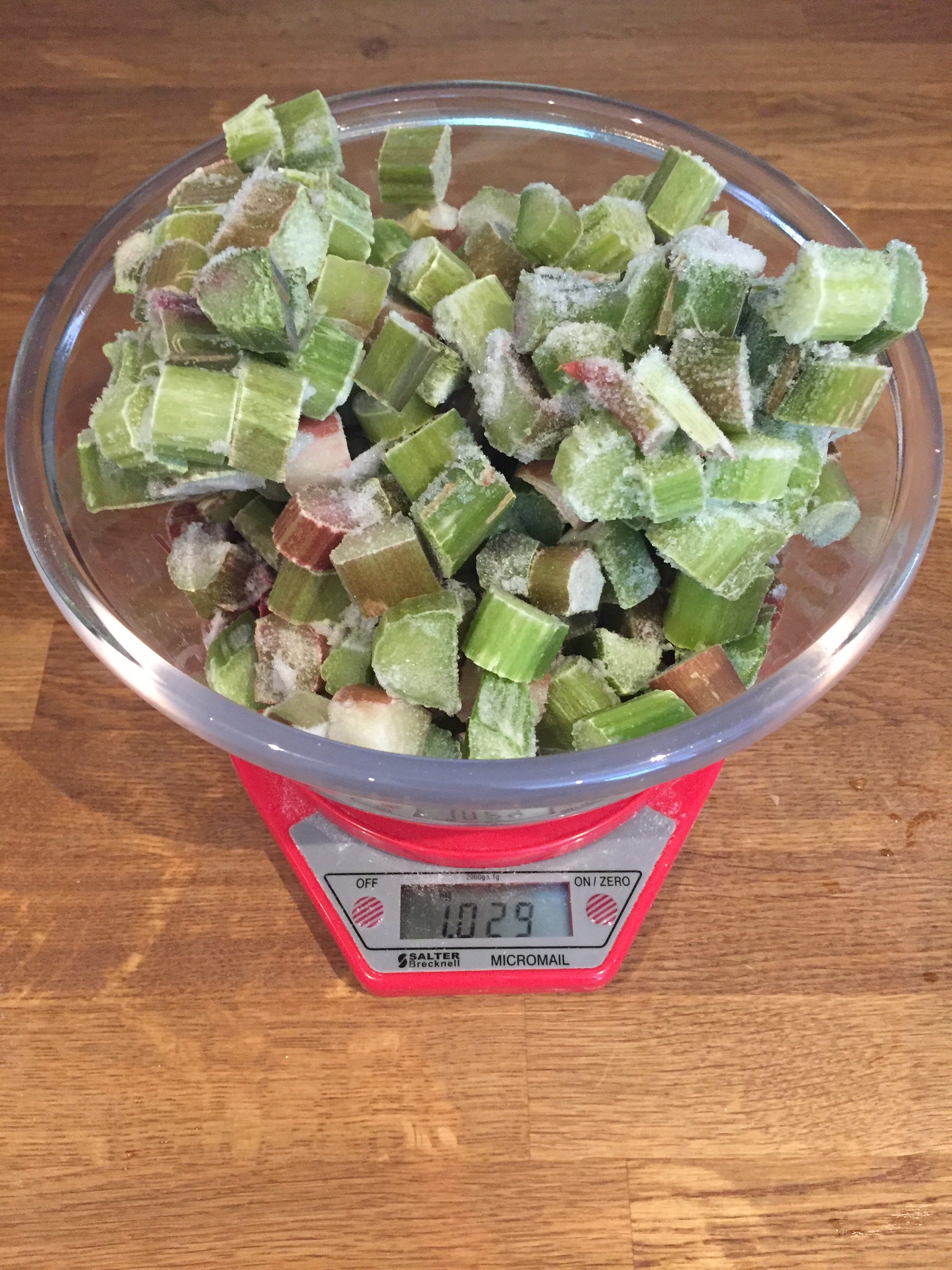 When I found I did have lots of rhubarb ready to pick all at once but perhaps not enough for a whole batch of jam and we were all crumbled out, I picked, washed and chopped it before then freezing in bags. It then makes it very easy to take out as much or little as you need as it takes your fancy.