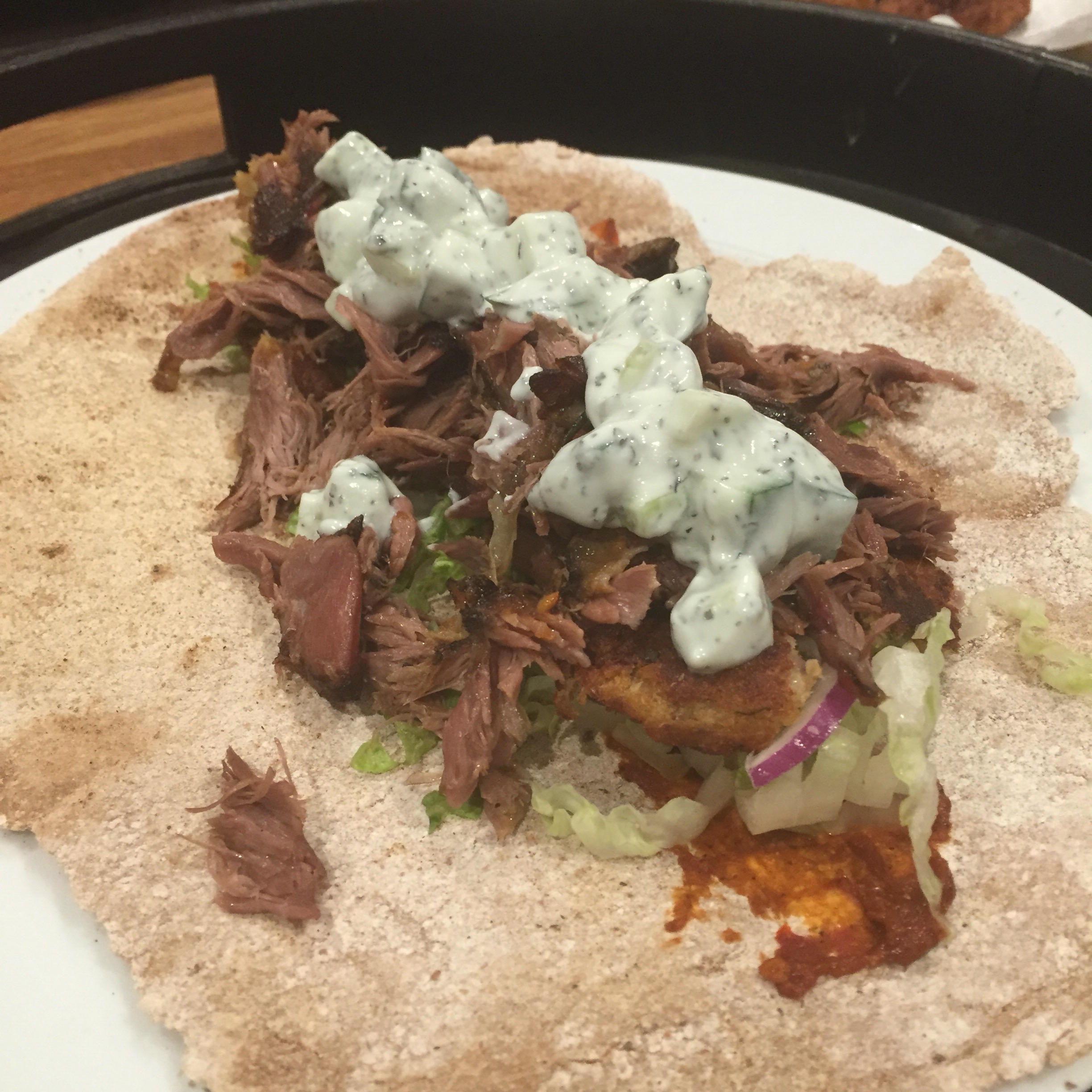Serve with a homemade wholemeal flatbread scraped with harissa paste, a little shredded lettuce and onion. Add some plain yoghurt with cucumber and mint and enjoy!